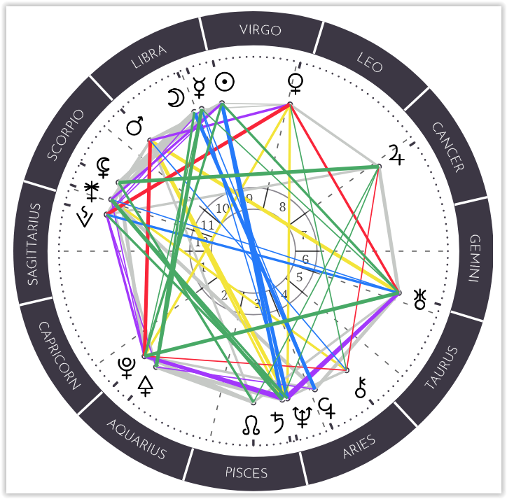 One of the most interesting features of the Castle is that it is anchored on an opposition with Sun at the cusp of Libra (at 29 degrees Virgo) conjunct Mercury (7 degrees Libra) opposite Saturn (28 degrees Pisces) conjunct Neptune (0 degrees Aries). It is the Saturn-Neptune conjunction that suggests literally a castle in the sky which has the potential to manifest through the grounding structure, discipline, and responsibility of Saturn in Pisces, which is reciprocated by Neptune positioned in Aries. The Sun-Mercury in Libra opposite Saturn-Neptune illuminates and activates the process, which will be of great healing and unification where clarity and understanding will prevail